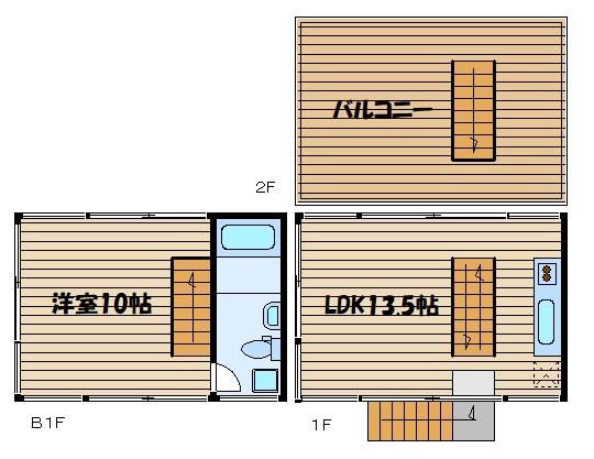 | 築年月 | 2011年8月 | 間取り | 1LDK( LDK13.5畳(1階)/洋室10畳(B1階) ) | 専有面積 | 49.3m2 |